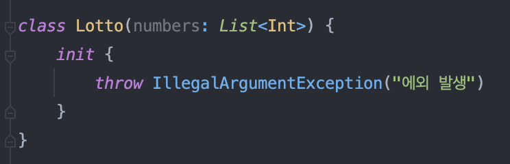 테스트 코드가 가능한 빨리 성공하게끔 만들어주기 위해 init 블럭 내에 IllegalArgumentException을 던져줍니다.