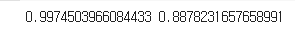 훈련 점수와 테스트 점수를 모두 출력해보면, 훌륭한 점수와 동시에 과대 적합을 낮추고 있음을 알 수 있다.