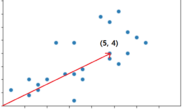 이 직선이 원점에서 출발한다면 이 그림에서처럼 두 원소로 이루어진 벡터로 표현할 수 있을 것이다.