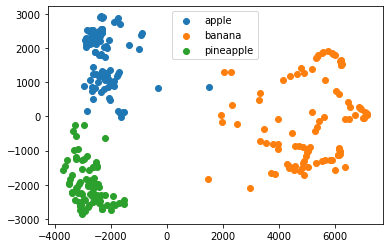 정말 보기 쉽게 3종류의 과일이 잘 분류되었음을 눈으로 확인해볼 수 있다.