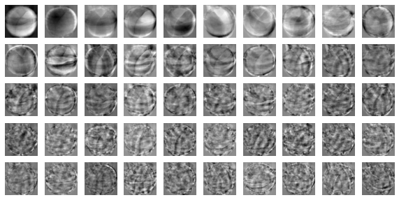 draw_fruits(pca.components_.reshape(-1, 100, 100))