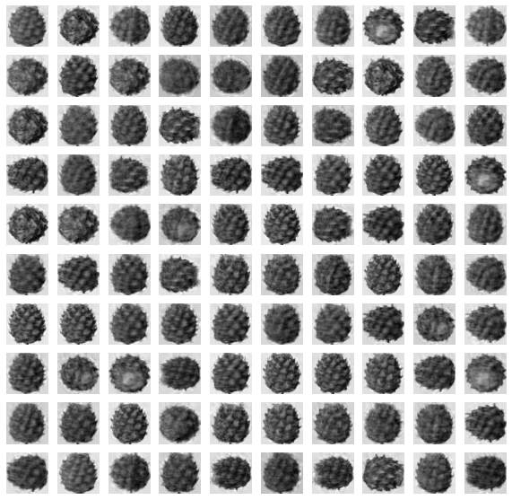 100개의 데이터씩 출력해본 결과 거의 모든 과일이 잘 복원되었다는 것을 확인하였다.