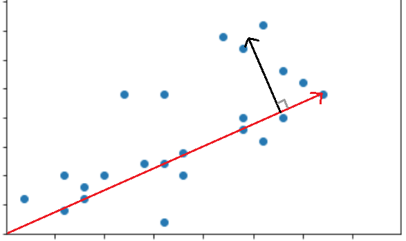 방금 찾은 첫 번째 주성분(벡터)를 찾았다면, 두번째 주성분을 찾아야 한다.