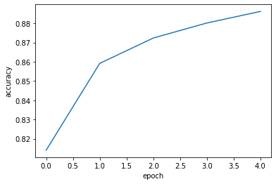 케라스는 기본적으로 에포크마다 손실을 계산하는데, 정확도까지 포함되어 있는 이유는 compile() 메소드에서 metrics 매개변수에 accuracy를 추가했기 때문이다.