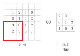 이 합성곱 과정에서 배열의 맨 왼쪽 위 모서리에 위치한 '1' 을 주목해보자.