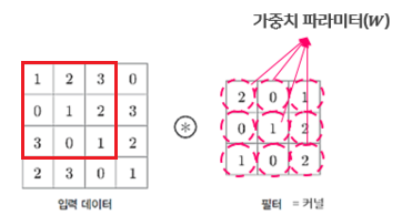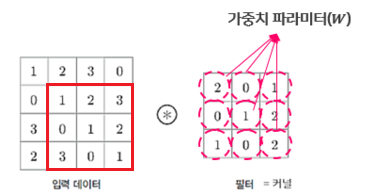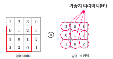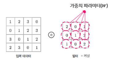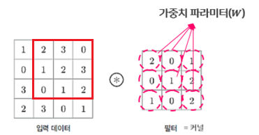 합성곱 신경망에서는 뉴런을 필터(filter) 혹은 커널(kernel)이라고 부른다.