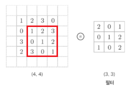 (4, 4) 입력과 동일한 크기의 출력을 만들기 위해서는 마치 '더 큰 입력에 합성곱을 하는 척' 해야 한다.
