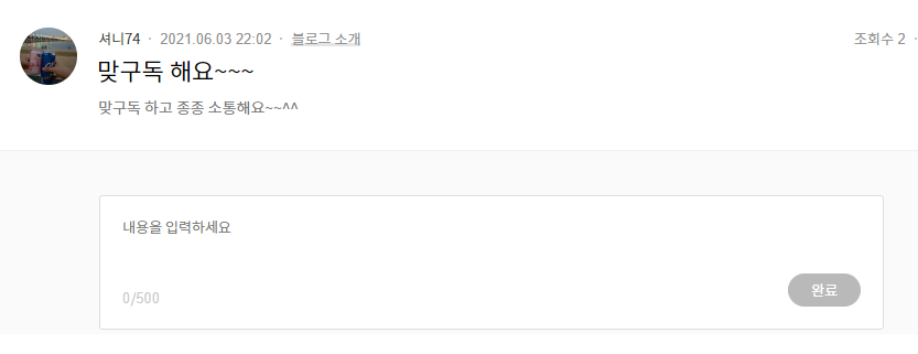 본인 또한 구독을 눌러주신 분들의 블로그에 방문하여 맞구독을 하고 댓글도 달았다.