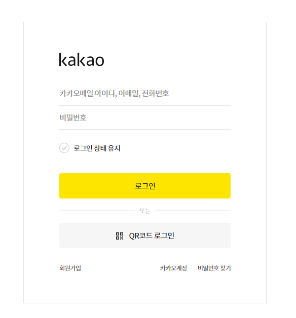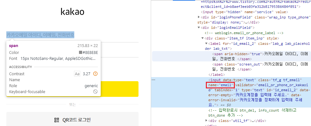 티스토리 로그인을 위해 코드로 카카오 계정의 이메일과 비밀번호를 입력받아야 한다.