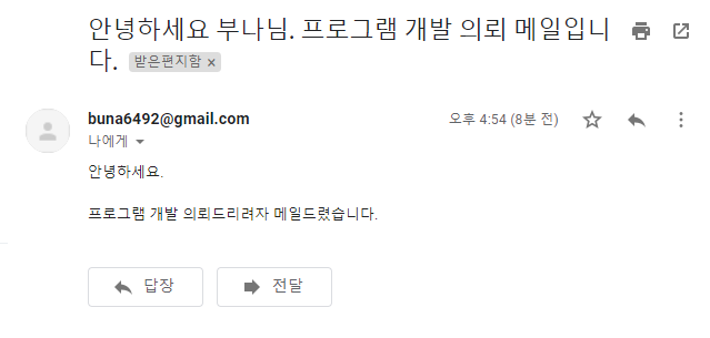 '안녕하세요 부나님. 프로그램 개발 의뢰 메일입니다.',# 메일 제목