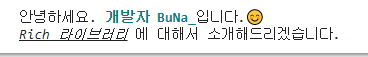 그 밑에는 Italic체와 Underline을 사용하여 'Rich 라이브러리' 부분을 강조해볼 것이다.