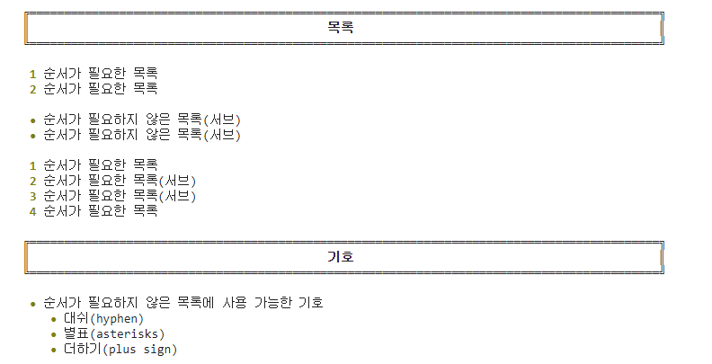 출력 전과 다른 점은 주요 목차, 순서에 색상과 기호, 테두리가 적용되었는 것이다.