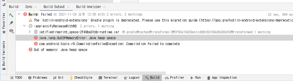 개발을 하다가 빌드를 하려고 하니 갑자기 위와 같은 오류가 출력되었다.