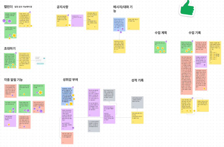 아이디어 기획단계에서는 위 사진처럼 피그마를 통해 한 주간 의견을 메모하고 회의를 통해 투표하고 수렴하는 과정을 거쳤습니다.
