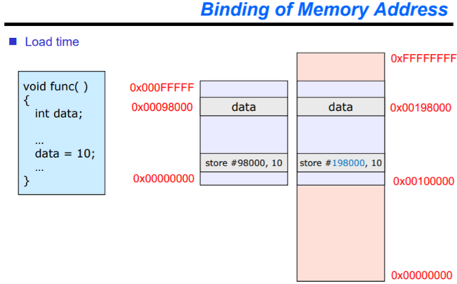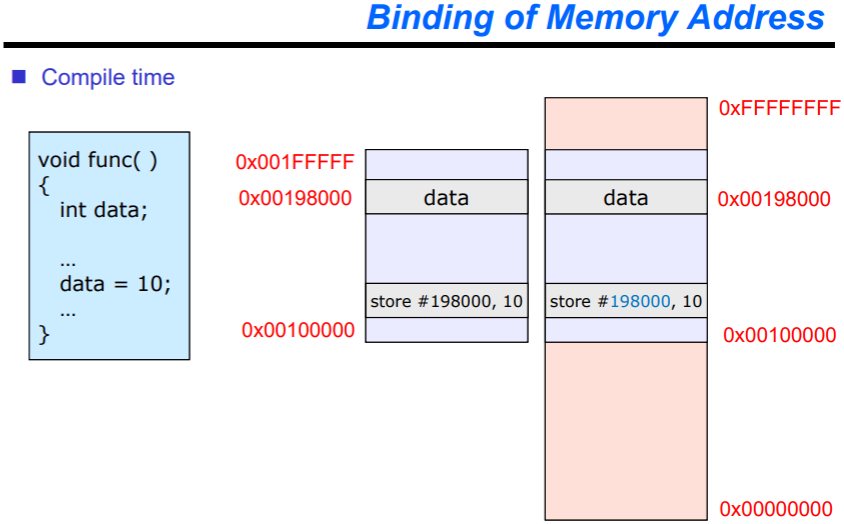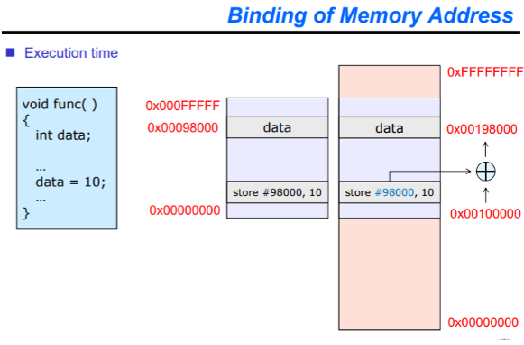 즉, 프로세스를 메모리에 할당시킬 때, 물리 주소를 언제(When), 어떻게(How) 결정하는지에 대한 주소 할당(Address binding) 기법입니다.
